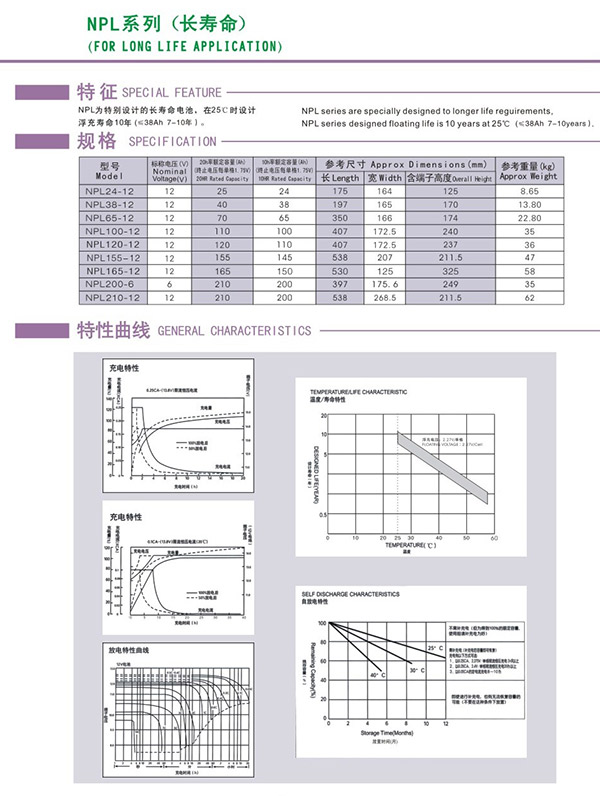 NPL为特别设计的长寿命电池,在20℃时设计寿命15年,在25℃时设计浮充寿命10年。