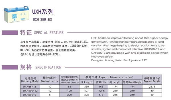 汤浅UXH系列电池