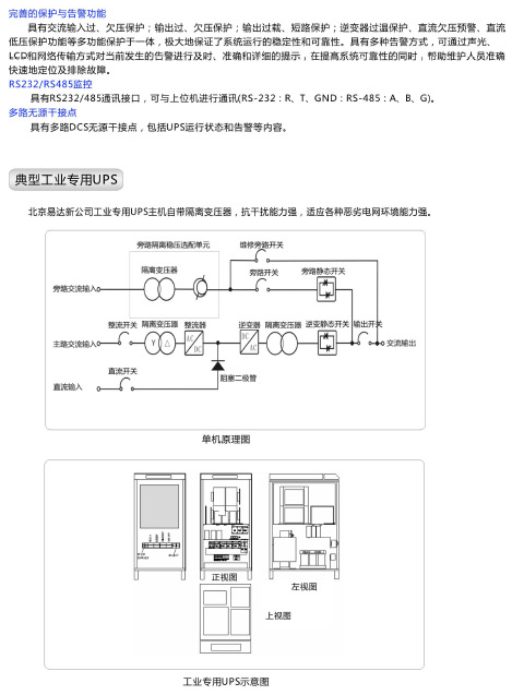 易达新2006年引进并消化吸收英国先进的定制UPS理念,在国内推广定制化UPS。定制UPS一改传统“工厂生产什么UPS、客户用什么UPS”的概念,而是推崇“客户需求什么,我提供什么UPS”,可以为客户需求打造最合适的应用解决方案。高效、标配输出隔离变压器、抗冲击、抗腐蚀、长寿命、抗潮、抗震、高原应用、高EMC性能、长后备、大容量电池充电、多制式中间电压、多制式输入输出电压、一机多制式输出电压、地线处理,各种特殊应用,易达新都能为用户提供合适的解决方案。