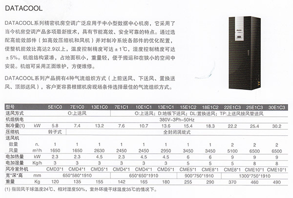 DATACOOL机房专用空调机组是特别为中小型机房设计的精密机房空调,为这些机房提供温度、湿度的高精度控制,具有极高的工作可靠性和稳定性和节能性。